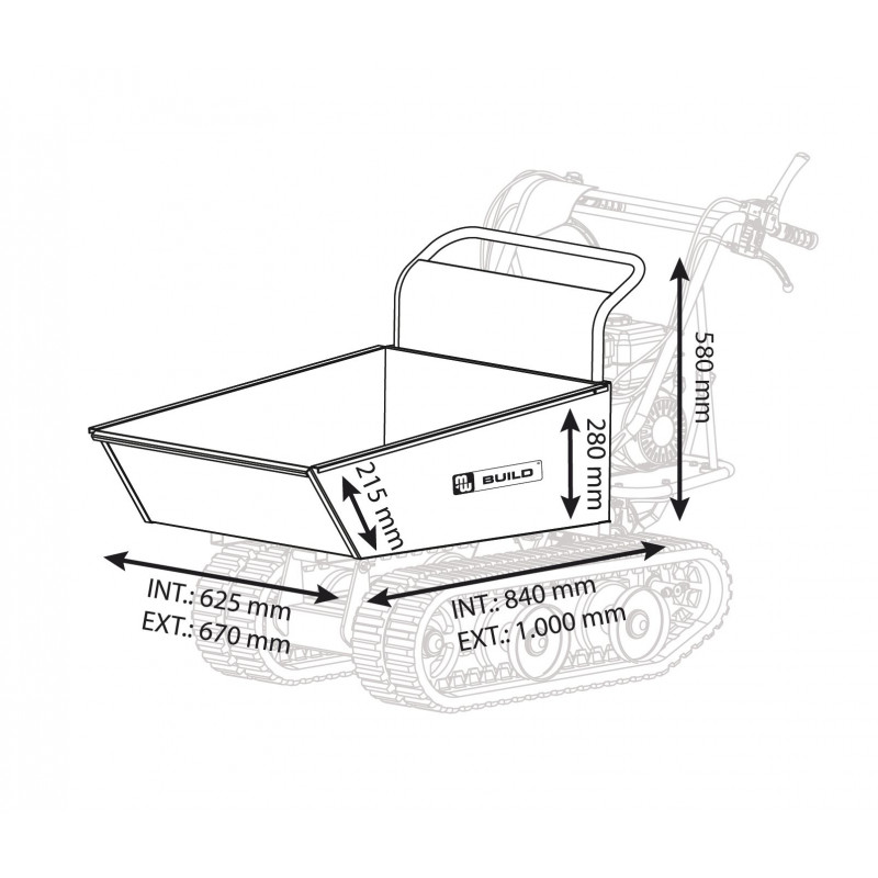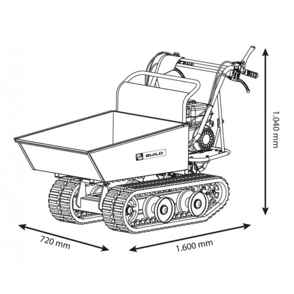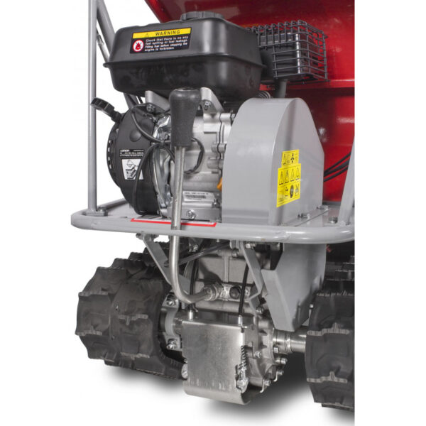 Brouette motorisée 300 kg sur chenilles pour une utilisation sur des sols difficiles.