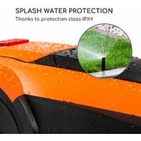 Le capteur de soulèvement et l’inclinomètre garantissent une sécurité optimale, car les larmes s’arrêtent instantanément dès que le robot tondeur se retrouve en position relevé ou en en forte pente. De même, lors d’une rencontre avec un éventuel obstacle, le capteur anti-colision de l’appareil s’active, évitant ainsi que le Garden Hero ne tourne et tonde dans une autre direction. Le robot tondeur peut avancer sur tout type de pelouse grâce à ses roues arrière Outdoor-Profil et est également doté d’une protection IPX4 contre les éclaboussures d’eau.