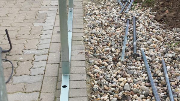 Pour une construction permanente Option 1. Fondation en béton Couler une fondation en béton selon les plans de construction de Kroftman. Les profils de sol du hangar doivent être ancrés avec des ancres en béton M12 x 180/055 (y compris). La surface du béton doit être parfaitement plane pour un raccord imperméable des cloisons. Option 2. Plaques de béton (Stelcon) Aménager un sol de fondation jusque sur la limite de gel avec par dessus un grand plancher de plaques de béton préfabriquées d’au moins 16 cm d’épaisseur (plaques Stelcon). Les profils de sol du hangar doivent être ancrés avec des ancres en béton M12 x 180/055 (y compris). Cette option est plus avantageuse et rapide. La surface doit être plane avec une descente de 1cm/m1 max dans une seule direction. Les surfaces courbes ne sont pas autorisées. Les éventuelles descentes situées dans la surface d’installation devront être égalisées pendant le montage ; des frais supplémentaires seront ainsi facturés. Pour une construction provisoire ou semi-permanente Option 3. Piquets (non y comprises) Des piquets de 1 100 x 25 mm pour un ancrage sur le pavage, l’asphalte ou un sol en sable/gravier tassé. La surface doit être plane avec une descente de 1 cm/m1 max dans une seule direction. Les surfaces courbes ne sont pas autorisées. Les éventuelles descentes situées dans la surface d’installation devront être égalisées pendant le montage; des frais supplémentaires seront ainsi facturés. Forer des trous d’ancrage de ∅30 mm dans les profils de sol en acier sur place (la scie trépan appropriée est fournie). L’installation de votre hangar avec des goupilles de sol vous permet de gagner du temps et de l’argent et est très appropriée si seule la construction provisoire est requise ou autorisée.