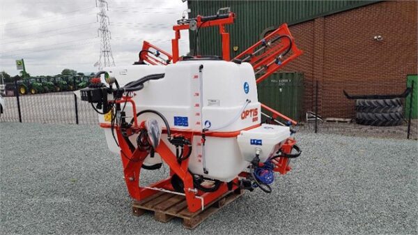 800L, rampe de 12 m, pompe PM125 OPTIS, élévateur de rampe hydraulique, nettoyeur de réservoir rotatif, réservoir de rinçage, porte-buses monojet, 3 sections de soupape électrique.